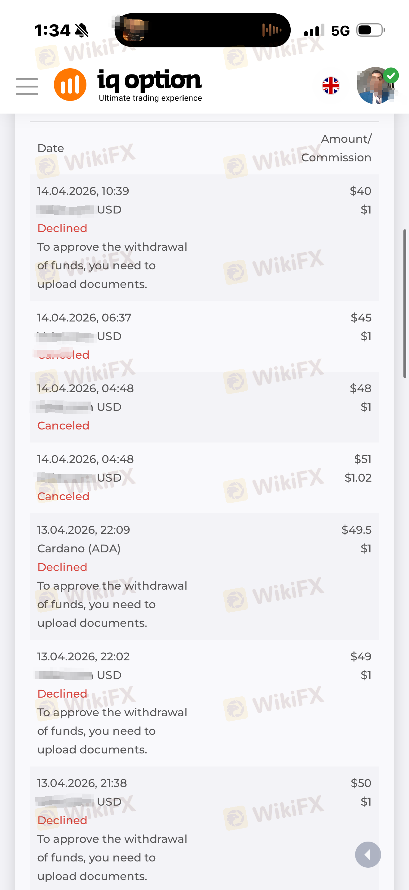 Hello, I need some help, please. I've been trying to withdraw money from iq option for about two weeks now. I started with 1,400, but it wouldn't let me. I've written many times, but they give me nonsensical replies because I've already sent everything they ask for via email, the app's chat, Telegram groups, Facebook, and Instagram, and nothing has been resolved. I need help, please.