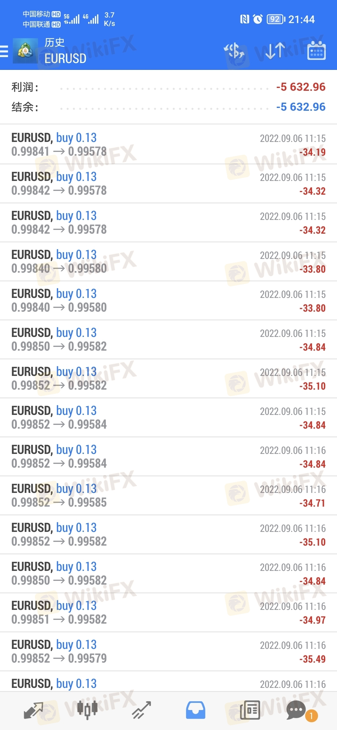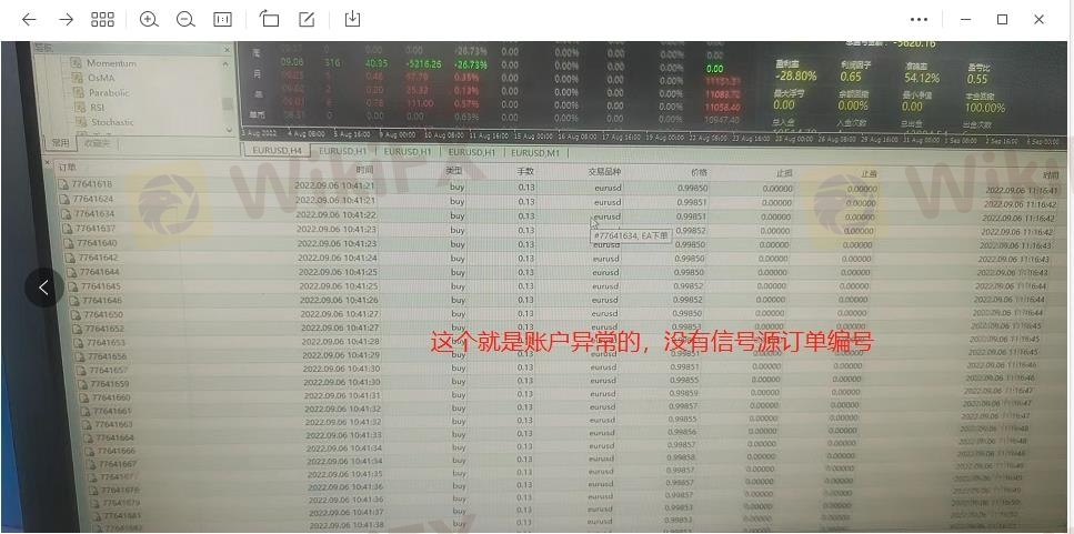 On September 6, 2022, I used the documentary software to copy orders. I logged into 2 different Depu real accounts in the same VPS. I used MT4 and MT5 orders. One account is normally followed by one order, and the other account But unlimited orders. At that time, I thought that there was a problem with the copying EA, so I closed the position manually. At this point I thought it was my own documentary software that had a problem, but it turned out not to be the case. Because there are many signal sources to follow, there are also 2 different Depp accounts on another VPS at night. The signal copy in this VPS is MT4 and MT4. However, the same problem also occurred, one is normal, and there was a problem before. 's account is once again unlimited repeat orders! At this time, I realized that it was not the problem of my copying software, but the problem of the platform account. After contacting customer service, the platform will handle it. I kept procrastinating and said that the technology was very busy. Finally, I sent the documentary software to the platform and asked them to test the problem of the documentary software. In the end, no problem was detected. But the platform said it was a problem of copying EA, and it had nothing to do with them! It dragged on for almost a month. The log has been sent to the platform, and it is normal to read it. For a while, it said that it was a problem with the MT4 version, and for a while, it talked about other problems! In the end, there is no problem in the test, and it is said that I have a software problem with the order.