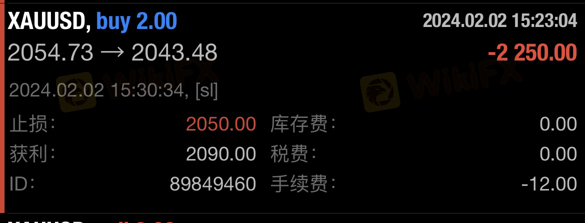 Yesterday I placed a long order for spot gold. The order point was 2054.63. The stop loss was set to 2050 and the take profit was set to 2090. Then I was busy with other things and did not look at the computer. It turned out that the order was stopped. The transaction point is 2043.48, which is 652 pips away from my stop-loss. I placed an order for 2 lots, which cost me an extra US$1,304. You need to give an explanation!