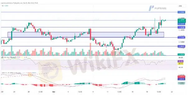 GBP/USD has broken above its recent high level, suggesting a bullish bias for the pair. The RSI is on the brink of breaking into the overbought zone, while the MACD had a bullish cross and edged higher, suggesting the pair's bullish momentum remains strong.