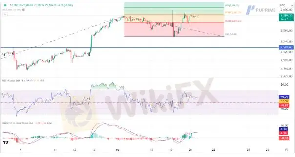 Gold prices are trading higher while currently testing the resistance level. However, MACD has illustrated increasing bearish momentum, while RSI is at 60, suggesting the commodity might experience technical correction since the RSI retreated sharply from overbought territory.