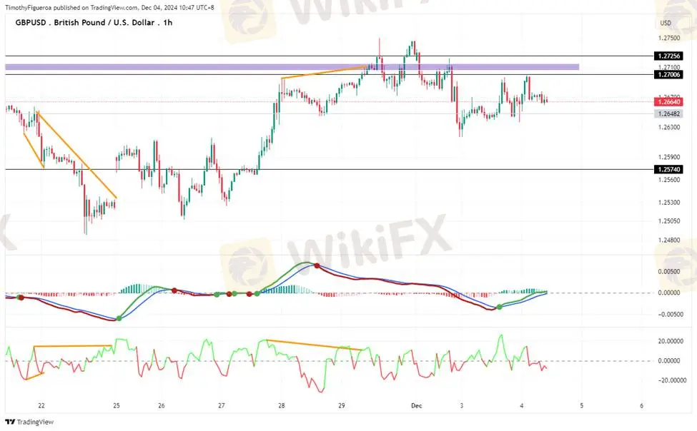 GBPUSD - The pound found support, suggesting further upward movement. The MACD reflects robust bullish momentum, while the RSI indicates stagnation but leans slightly toward buying. While price momentum suggests a bullish continuation, some rejection hints at the possibility of retracement.