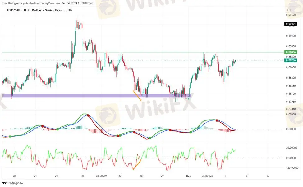 USDCHF - The Swiss franc continued its bullish trend, recovering after repeated failed attempts to breach a prior swing low. The RSI and MACD support upward momentum, indicating strong buying potential.