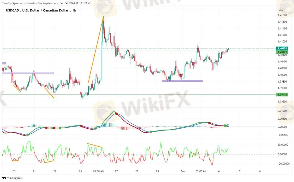 USDCAD - The CAD shows upward momentum, with the RSI and MACD signaling strong buying strength. A sharp recovery in price from recent lows suggests a continuation of the bullish trend.