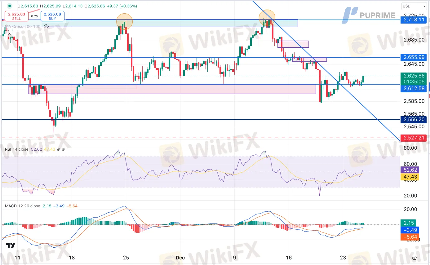 Gold prices hovered around the strong support level of 2610, reflecting thin holiday trading. Investors are awaiting stronger catalysts to determine golds direction. potential Fed monetary tightening in 2025 may pressure non-yielding assets like gold.