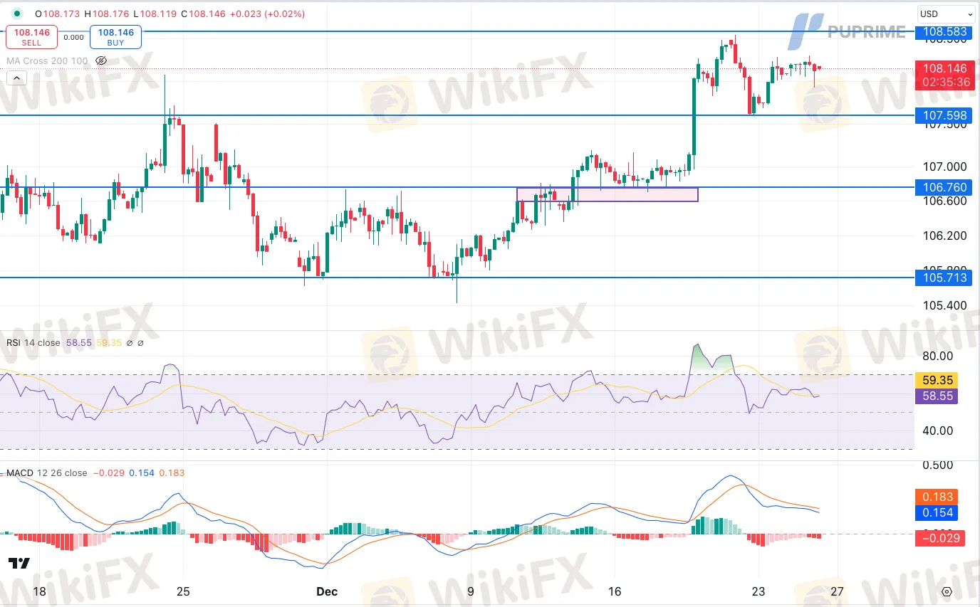 The Dollar Index held steady amid subdued holiday trading but maintained a positive trajectory, reflecting hawkish sentiment from the Federal Reserve. Fed officials signaled potential policy tightening in 2025, supported by a resilient economic recovery, keeping investors focused on upcoming US economic indicators for further direction.