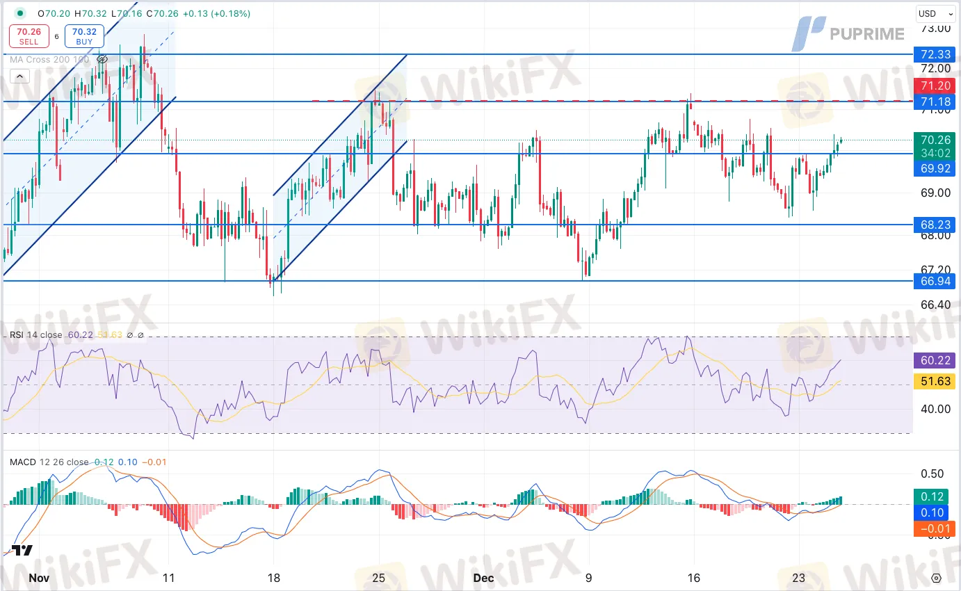 Market activity remained subdued due to holiday sessions, with the Dollar Index trading flat yet maintaining a positive trajectory. Investors continue to digest hawkish expectations from the Federal Reserve, supported by recent Fed statements hinting at potential monetary policy tightening in 2025 due to better-than-expected economic recovery. Despite this outlook, the dollar's future performance remains data dependent. Market participants should remain cautious, focusing on upcoming US economic indicators for clearer direction.