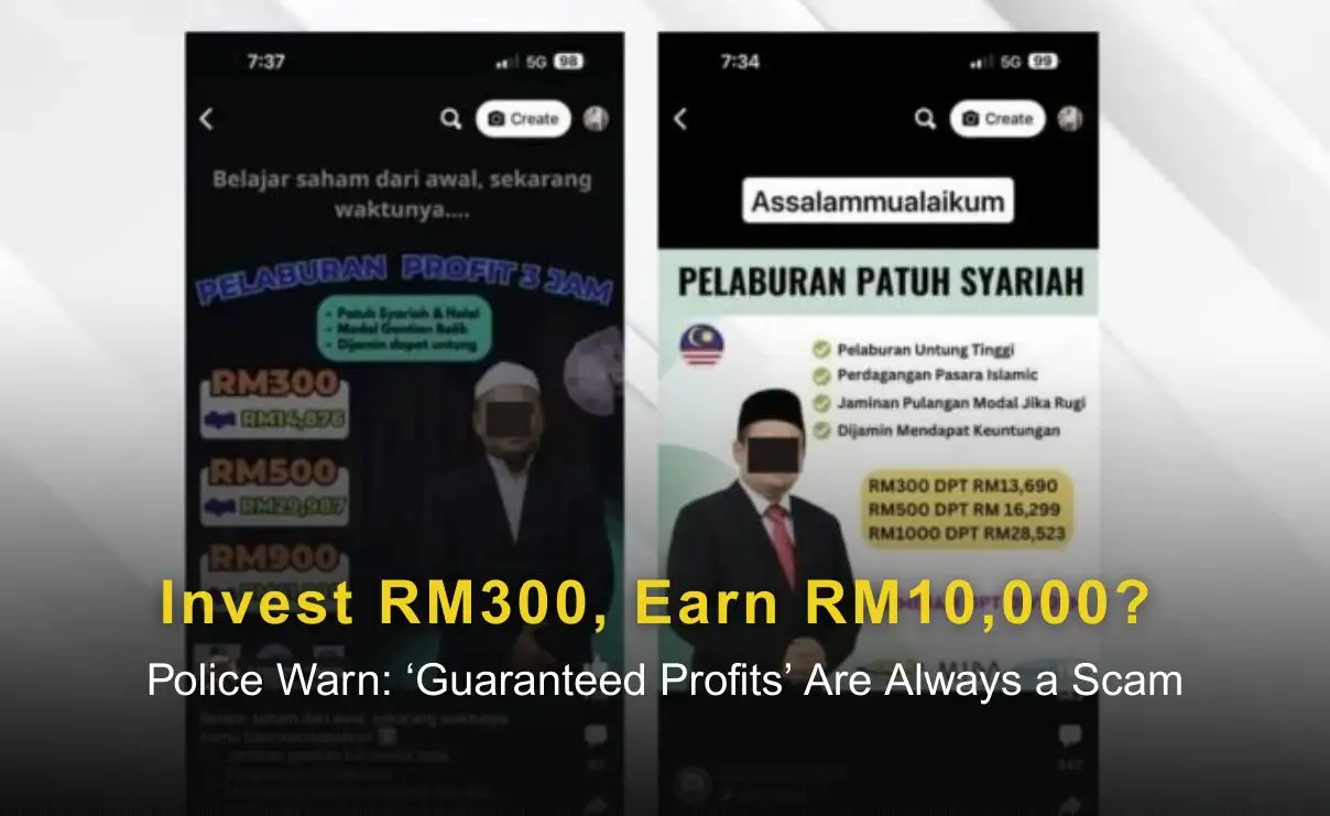 Malaysian police have warned the public about a surge in social media investment scams that promise extremely high returns, such as turning RM300 into more than RM13,000. Authorities say these offers are clear red flags, as scammers often use fake testimonials and profit screenshots to gain trust before disappearing with victims’ money. The public is urged to verify investment platforms and avoid schemes that guarantee profits.