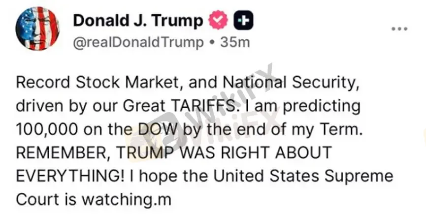 Adding fuel to the rally, Donald Trump posted bold remarks on Truth Social, forecasting that the Dow Jones Industrial Average could reach 100,000 during his presidency. A convergence of positive headlines significantly reignited market risk appetite.