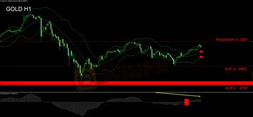 Using Bollinger Bands on the hourly gold chart, prices are currently testing the upper band. Under a range-bound framework, the probability of a pullback appears elevated. Chasing long positions at this stage is not advisable, particularly as the Bollinger Bands have yet to expand in a manner that confirms a directional trend.