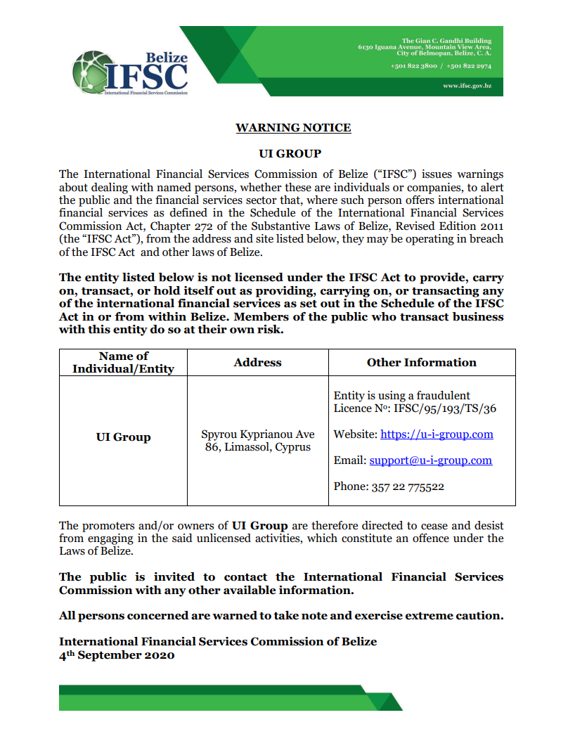The International Financial Services Commission of Belize (“IFSC”) issues warnings