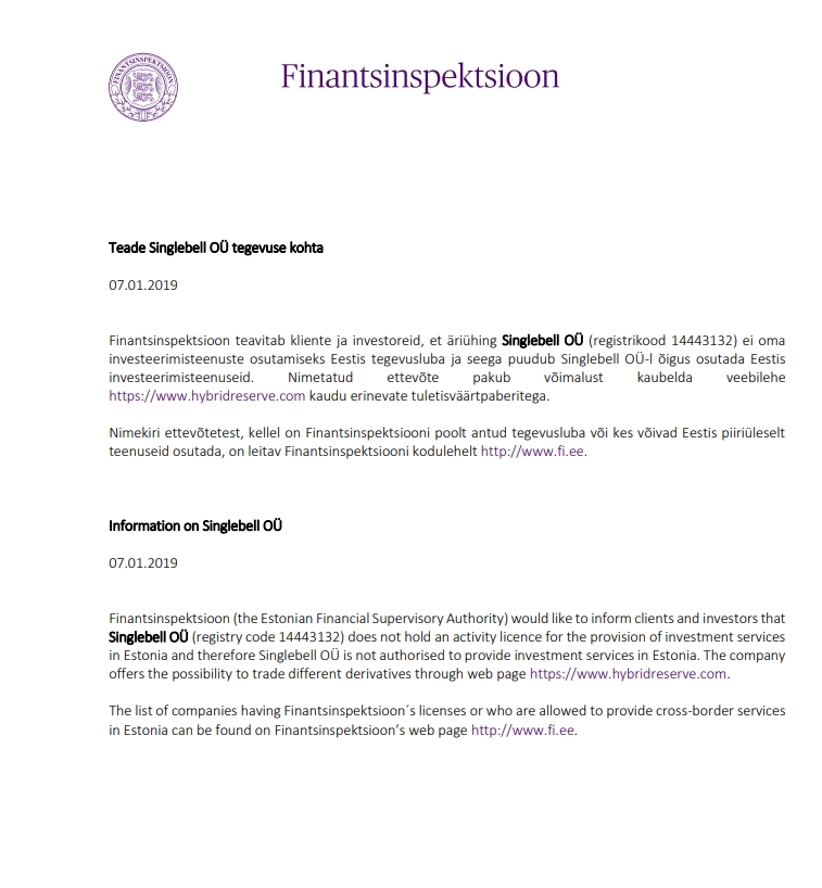 Investor alerts Singlebell OÜ (hybridreserve.com)
