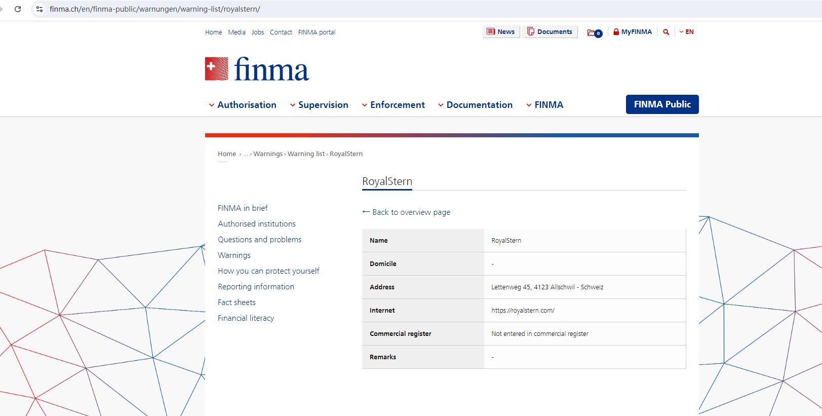Warning list of unauthorised companies and individuals Warning List - https://royalstern.com/
