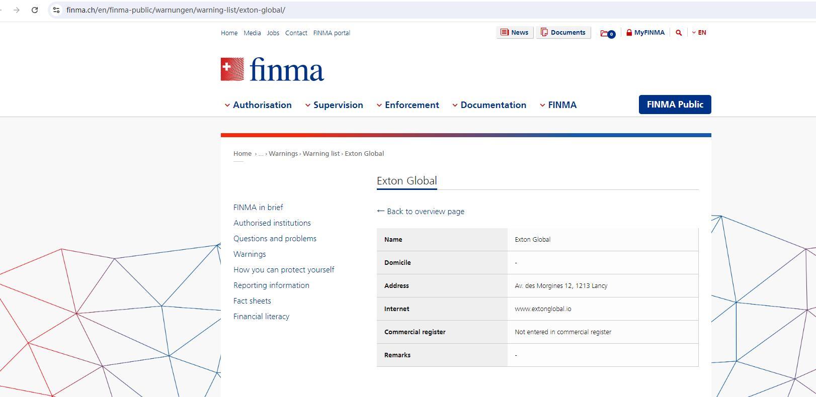 Warning list of unauthorised companies and individuals Warning List -www.extonglobal.io