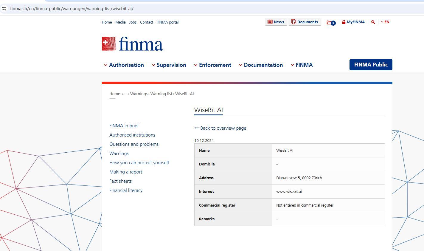 Warning list of unauthorised companies and individuals WiseBit AI