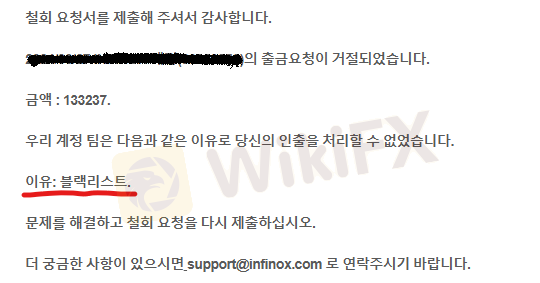 [한국어]단기 스케일링 과정에서 불가피한 액화가 발생하였습니다청산 후 리베이트를 인출하려고 했습니다출금이 거부된 후 출금 신청을 차단했습니다그리고 블랙리스트에 올라 있습니다INFINOX에 메일을 보냈지만, 조사 중이라는 이유만으로 진전이 없습니다1. 당신은 왜 돈을 인출하기를 거부합니까2. 어떤 수사가 진행되고 있습니까3. 조사는 어떻게 되고 있습니까4. 왜 사건이라고 합니까5. 블랙리스트에 올라 문제를 해결하고 다시 철회를 요청하라고 했습니다문제가 무엇인지, 어떻게 진행되어야 하는지에 대한 설명이 없습니다많은 질문에 답하