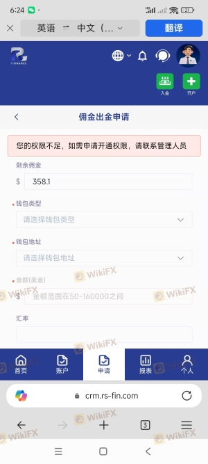 我是RS代理,无缘无故不给我出佣金,佣金现在不能转入账号,也不能出金。一点信用都没有,平台一直联系不上人,有个人说是平台的人,也说没有权限。一直没有人来处理,特来申诉!
