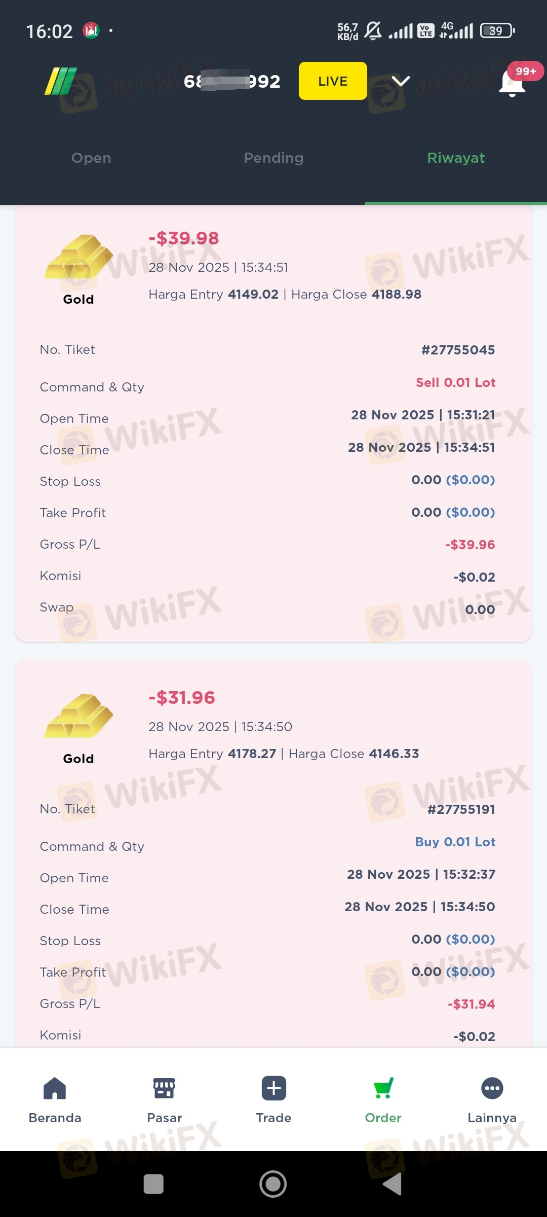 Untuk yang mau pakai broker ini, pikir lagi deh, saya entry berapa yang masuk berapa, tiba tiba autocut wkwkwkwkwk cari yang memang terpercaya