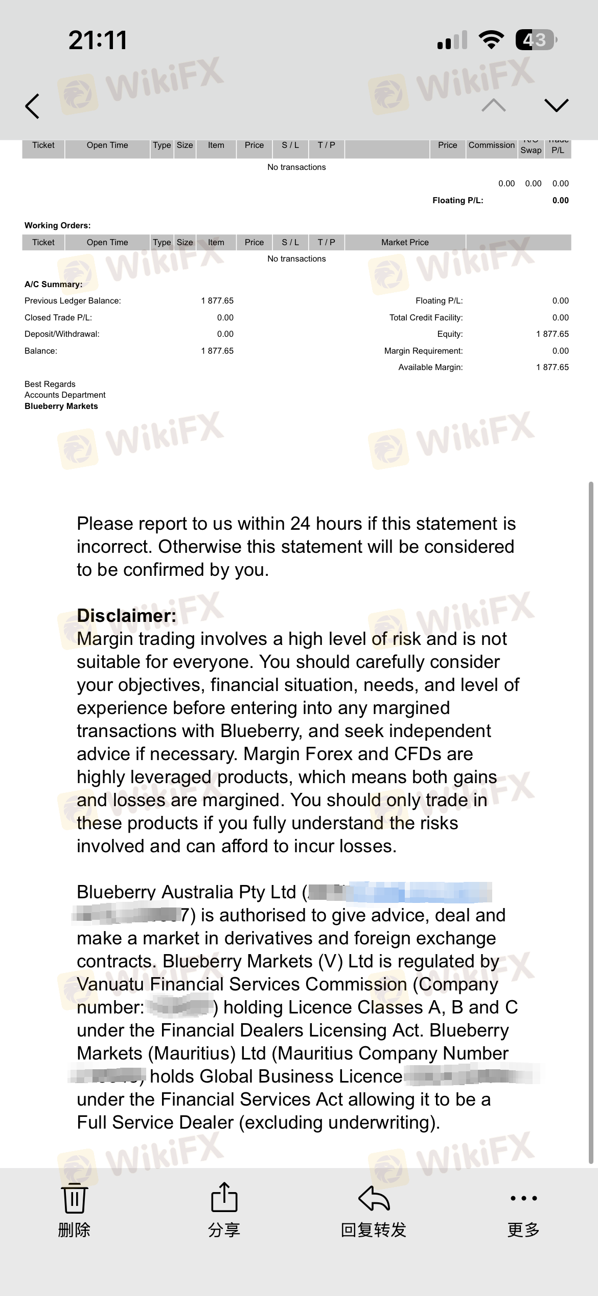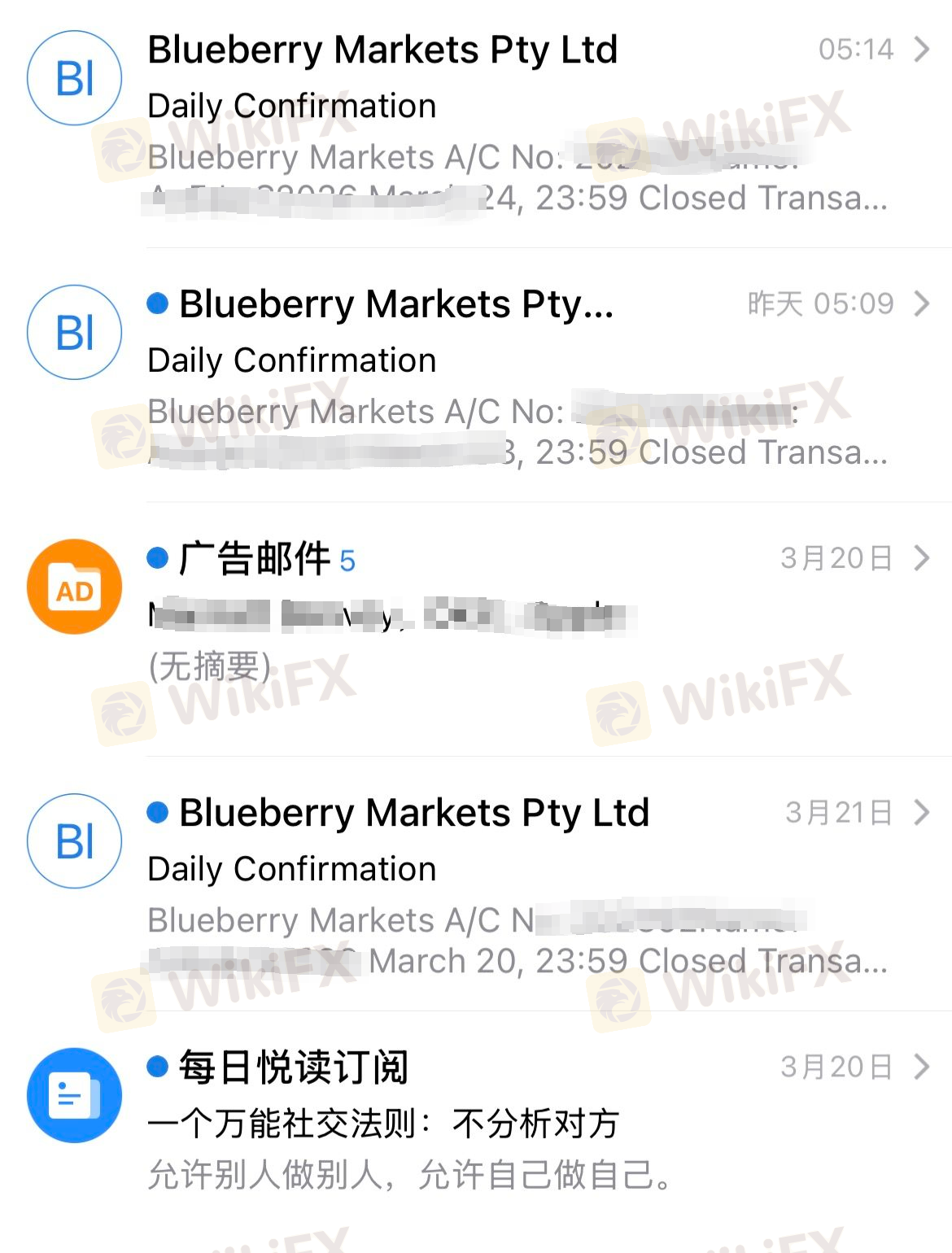 联系了蓝莓市场的客户经理咨询,客户经理跟我说在蓝莓市场做单没有任何限制,之后,我就入金交易,赶上行情好盈利了5490元美金加上返佣1019美金,做单十几天后账户上无故被扣除了所有盈利和佣金6562美金,现在后台和账户都被冻结,连本金都出不来,我每天做单平仓后邮箱都会收到每日的交易报告,邮箱每天能收到交易报告就说明平台是认可我的单子的,平台能让客户下单说明就是正常交易,为什么客户盈利了就说违规?难道客户亏损了平台也会返还吗?我在其他平台交易十几年都是这样子做单的,没有哪家平台说过是违规交易