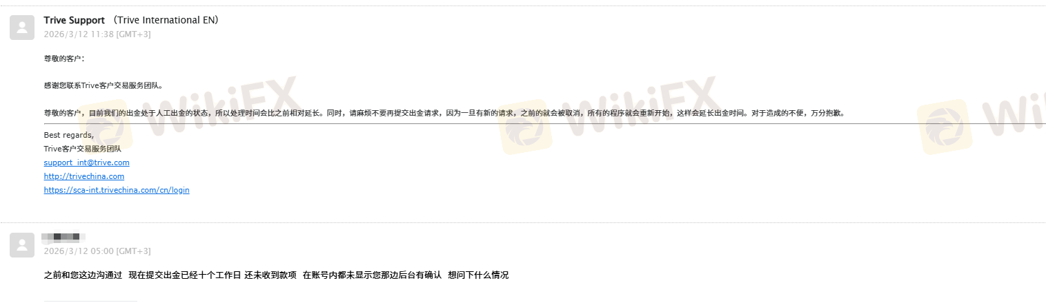 Over these past seven to eight years, I have poured all my hard-earned savings into trading, with devastating results that are too painful to recount. Starting in 2025, I occasionally made some profits from short-term trades, and deposits/withdrawals processed normally. Just before the Chinese New Year in 2026, based on my market range predictions and trading strategy, nearly all my manual trades were correct, resulting in significant and consistent profits. The Issues: 1. Withdrawal Blocked: On February 12, 2026, I submitted a withdrawal request for USD 44,000. The official website/email confirmed it would arrive within 2 business days. It has now been a full 31 days, and I have not received a single cent. Customer service repeatedly states they "cannot provide a definite timeline for the withdrawal," offering no solution. 2. Forced Liquidation & Account Ban: On February 13, 2026, the platform forcibly liquidated my carefully positioned long-term holdings without justification. My account was also banned from any further trading. 3. Funds Held Hostage: My account balance currently stands at USD 152,541.05. Since you have banned my account from trading, you are obligated to return the entire balance to me immediately. My Demand: If Trive operates as a straight-through processing (STP) broker earning commissions, it has no right to interfere with or ban client accounts. If it acts as a counterparty in a B-Book model, it must honor client profits. It is utterly shameless and beyond unethical for a platform to allow clients to lose everything but then prohibit and confiscate their hard-earned profits. Clients risk their life's savings in these markets. This behavior has no bottom line. If you cannot handle winners, exit the business and stop scamming traders. I want a direct answer from Trive: WHEN will you process my withdrawal and return my full account balance of $152,541.05? I demand that senior management contact me directly. Do not hide. Give me a clear and definitive answer NOW.