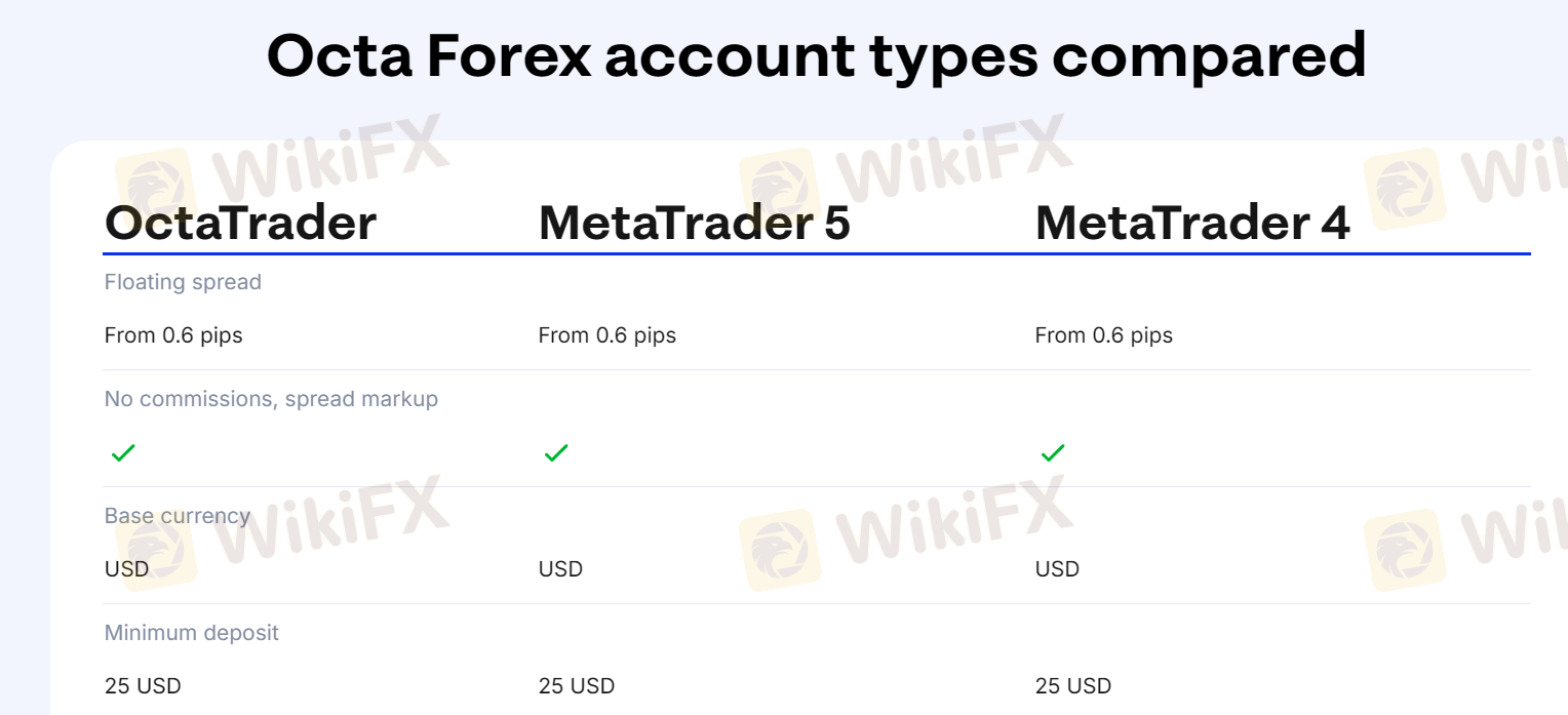 Octa offers trading in currrency pairs, gold/silver, commodities, indices, and cryptos.