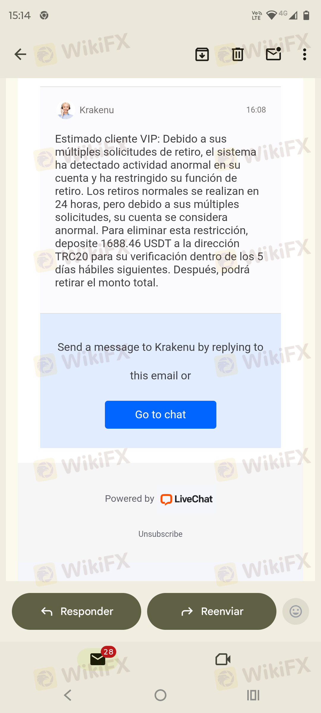 Cannot withdraw funds on KRAKEN exchange. If you want to withdraw funds, you need to deposit 20% of total assets first.