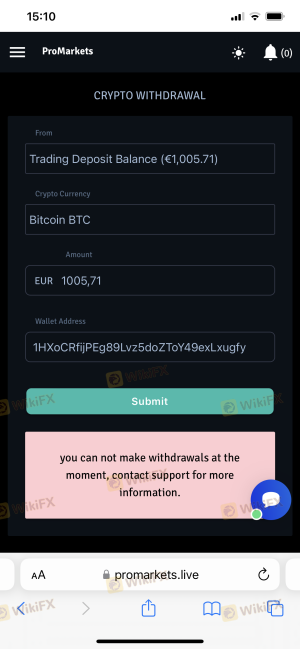 I was creating a withdrawal request with ProMarkets on 27 Feb 2023 and they still didn`t approve it. Derek and Peter were calling and WhatsApp me every day in the beginning but since I requested my withdrawal nobody was answering. They only want you to deposit money and lose and when you making a profit the broker is not accepting withdrawals. I hope I will get at least my deposit back but so far all I can say is that the broker is not accepting withdrawals.