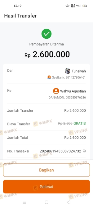Initially, I transferred $2,600,000 and was promised liquid money along with commission. but after I transferred it couldn't be disbursed, I had to transfer another 7,258,000. I've made the second transfer, but I still can't disburse my money because I have to transfer again around 12 million. But I didn't make the third transfer because my money ran out. Please help me get my money, 9,858,000 back.