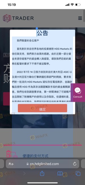 Announcement: Our dear customers First of all, we would like to express our heartfelt thanks to investors from all over the world for their trust and support to HDG Markets. Due to the recent transfer and withdrawal of funds from some customers with doubtful sources of funds, our current business had to be suspended due to regulatory requirements. On July 14, 2022, we received an inquiry from the Australian ASIC and the Australian Anti-Transnational Crime Department, asking us to investigate a batch of suspected wire fraud, financial fraud and use HDG as its illegally concealed illicit money flowing to HDG Markets. Means of funding to launch an investigation. After we received the investigation request, we immediately froze suspicious accounts and restricted the use, deposits and withdrawals of corresponding accounts. Unfortunately, during the two-week appeal period, we were unable to receive strong supporting materials during our communication with the account holders, which led to further escalation of our investigation by the regulatory authorities, which has now been frozen. Our margin clearing account at National Australia Bank (NAB) and all our liquidity clearing accounts. In view of the requirements of the regulators and the Australian police, from now on, all new accounts, derivatives contract trading services and customer deposits and withdrawals of HDG Markets will be suspended until we cooperate with the police to complete all evidence transfer and operate normally. During this period, I hope that investors will remain patient, and we will continue to further investigate the accounts involved in this incident and ask them to add more evidence so that we can complete the review as soon as possible. We are very sorry for the inconvenience caused to you during this period, and thank you for your active understanding and patience. HDG Markets