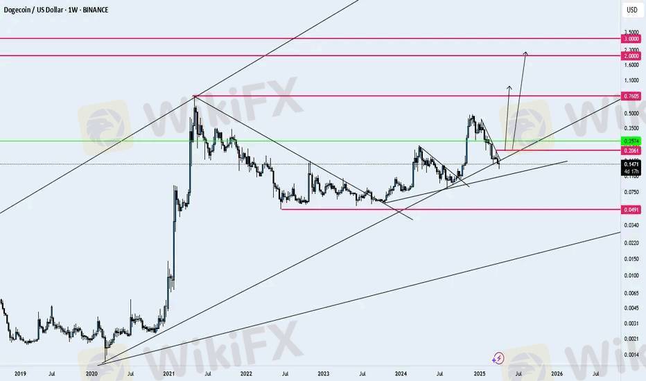 Dogecoin has broken above its long term downtrend and is currently holding trendline support. If momentum continues, key levels to watch are $0.28, $0.43, and $0.48 as potential upside targets.