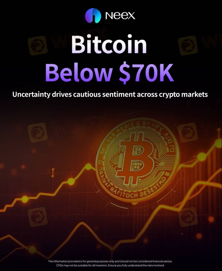Bitcoin dropped below $70K as uncertainty over geopolitical developments and U.S. regulation pressured sentiment across crypto markets.#bitcoin #cryto The information provided is for general purposes only and should not be considered financial advice. CFDs may not be suitable for all investors. Ensure you fully understand the risks involved.