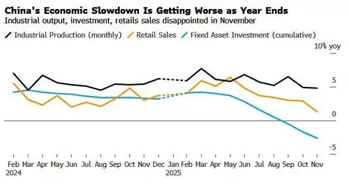 China‘s economic momentum slowed broadly in November, with a marked weakening in consumer spending,