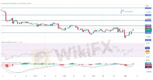 GBP/USD surged from its recent low level but is facing strong selling pressure near the 1.3000 mark; a break above such a level may be a trend reversal signal for the pair. The RSI remains below the 50 level, while the MACD has yet to break above the zero line, suggesting that the pair remains trading with bearish momentum.