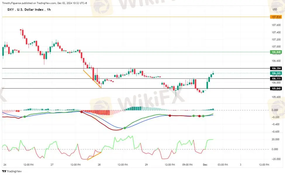 DXY - The dollar has reached new highs despite rate-cut expectations. Speculation around inflationary policies from Trumps administration adds to buying momentum. The RSI shows oversold conditions despite minor price movements, reflecting strong buying pressure.