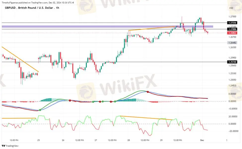 GBPUSD - The pound has shifted back to selling momentum. While the MACD indicates potential buying, the RSI shows overbought conditions, pointing to a continuation of the bearish trend.