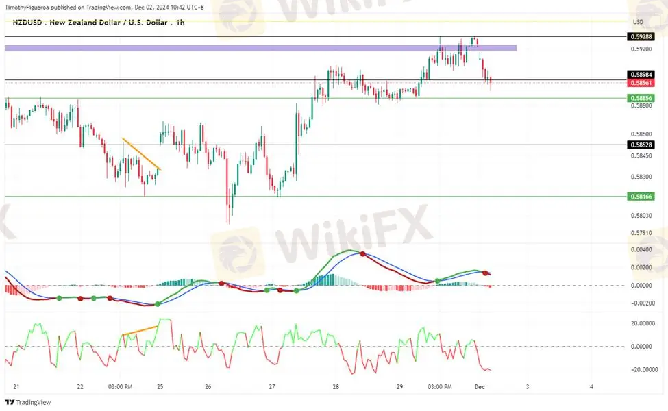 NZDUSD - The kiwi exhibits bearish momentum, with price pullbacks reflecting overbought conditions and signaling increased selling pressure. While the MACD shows growing volume and momentum for buying, the broader trend suggests continued selling with potential for higher pullbacks.