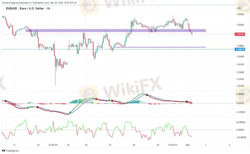 EURUSD - The euro remains in consolidation ahead of the rate cut decision, with potential for a higher pullback as the MACD reflects increased momentum. However, the RSI shows a divergence with overbought levels, suggesting a potential decline from current prices.