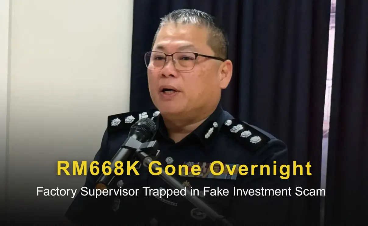 A factory supervisor lost RM668,800 after falling for a fake share investment scheme that used fabricated profits on a cloned trading app to gain his trust, before blocking withdrawals and disappearing with the funds.