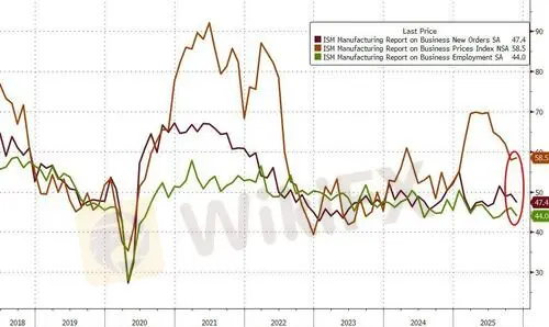 Under the hood, ISM shows Price Paid higher, and new orders and employment worsening...
