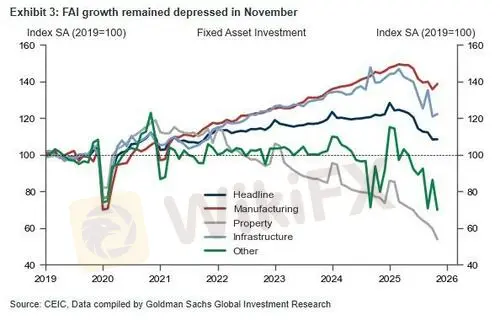 Fixed asset investment (FAI) maintained its double-digit year-on-year contractionin November on a single-month basis, though we would not over-interpret its recent slump as our study suggests that the NBS statistical correction of previously over-reported data has played at least as large a role as fundamental factors (e.g., the “anti-involution” policies and a prolonged property downturn).