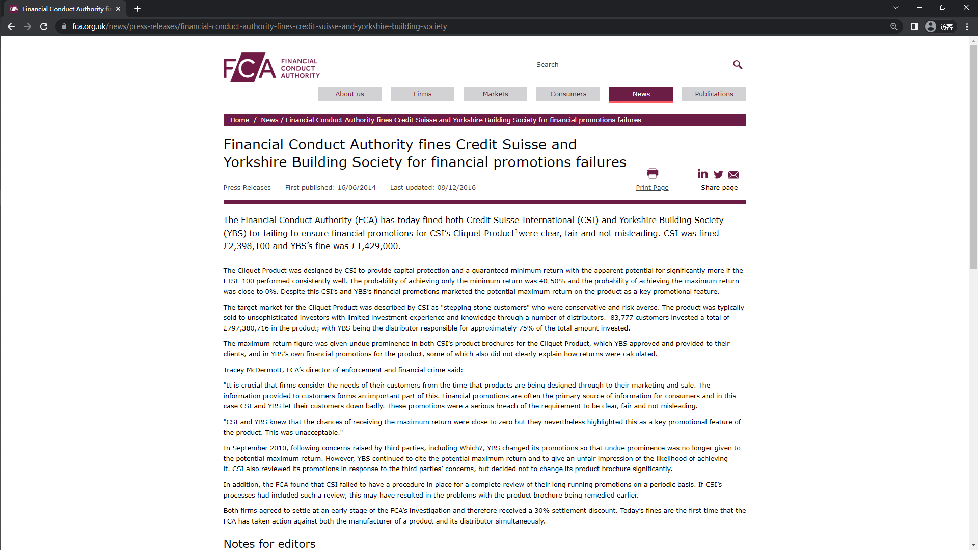 Financial Conduct Authority fines Credit Suisse and Yorkshire Building Society for financial promotions failures