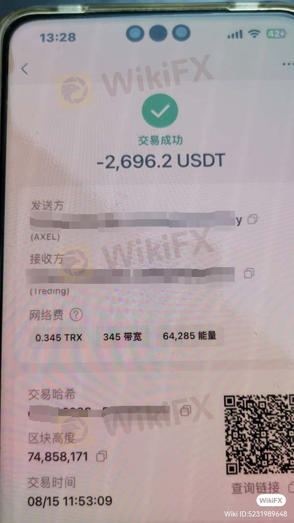 Aquí en Axel Private Market Limited, los depósitos y retiros son gratuitos. Sin embargo, en situaciones donde el entorno no está bajo nuestro control, se le cobrará una tarifa determinada no por AXEL sino por partes relevantes como bancos, empresas de monedero electrónico y/o proveedores de canales de pago relacionados con su depósito o retiro.