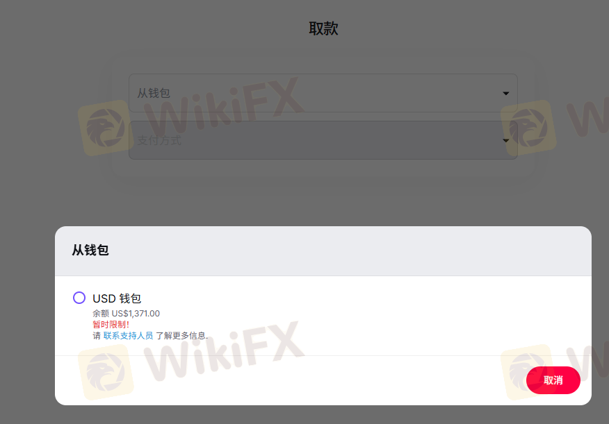 No se puede retirar y se deducen las ganancias, ¡el saldo de la billetera en USD de $1,371.00 está temporalmente restringido!