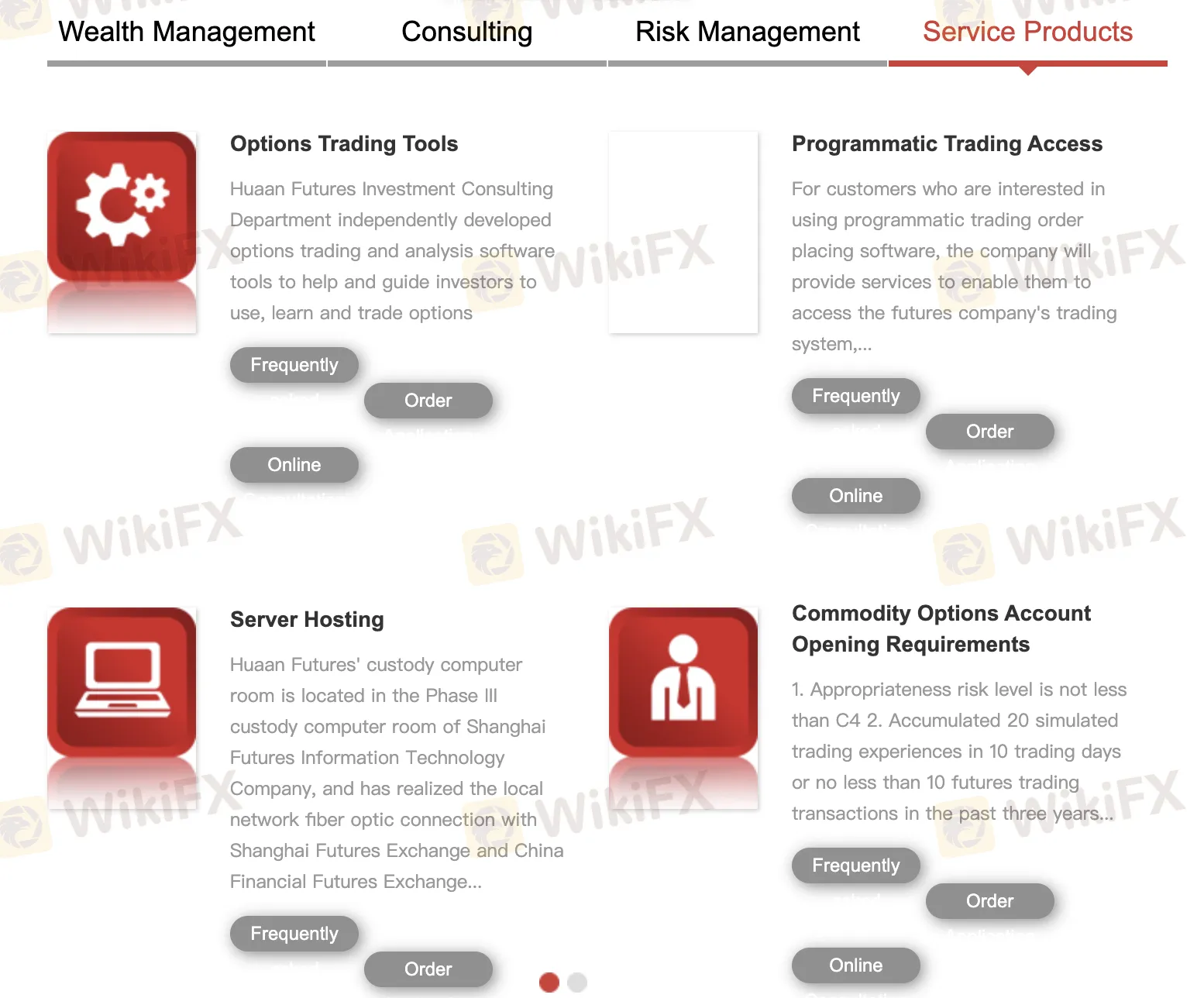 Huaan Futures ofrece una amplia gama de servicios que incluyen gestión de patrimonio, consultoría, gestión de riesgos y productos de servicios específicos, diseñados principalmente para inversores del mercado de futuros y traders profesionales.