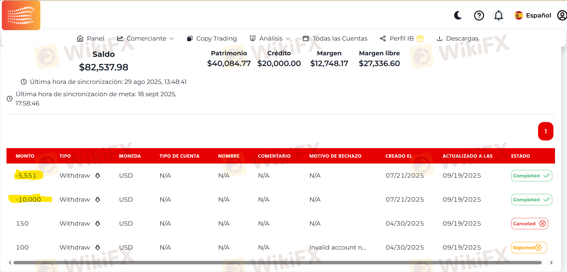Me contacto la asesora Natalia Bracamontes para iniciar el proceso y cuando la guerra de la franja de gaza me llamo para que invirtieron 70 MM para comprar petróleo qu vendiera mi casa porque eran una única oportunidad. Y fue tan grosera porque me negué a su solicitud. Entonces solicite mi retiro y me contacto un Lic Anthony dizque de servicio al cliente quien me contactaba para ayudarme con el retiro, pero para poder retirar me tocaba. completar 1000 dolares así que se hizo la orden de ingreso y luego de pedir y seguir pidiendo, ya no volvió a responder mis mensajes. Me asignaron otro comercial Santiago que no podía retirar con el sino hasta que hiciera un ingreso de 300 dólares y me podía ayudar a retirar 100 dolares y por último me contacto la lic Lizeth que mi cuenta venció y que me toca pagar 500 dólares para la activación de la misma o si no me empiezan a cobrar por el no uso de la plataforma.