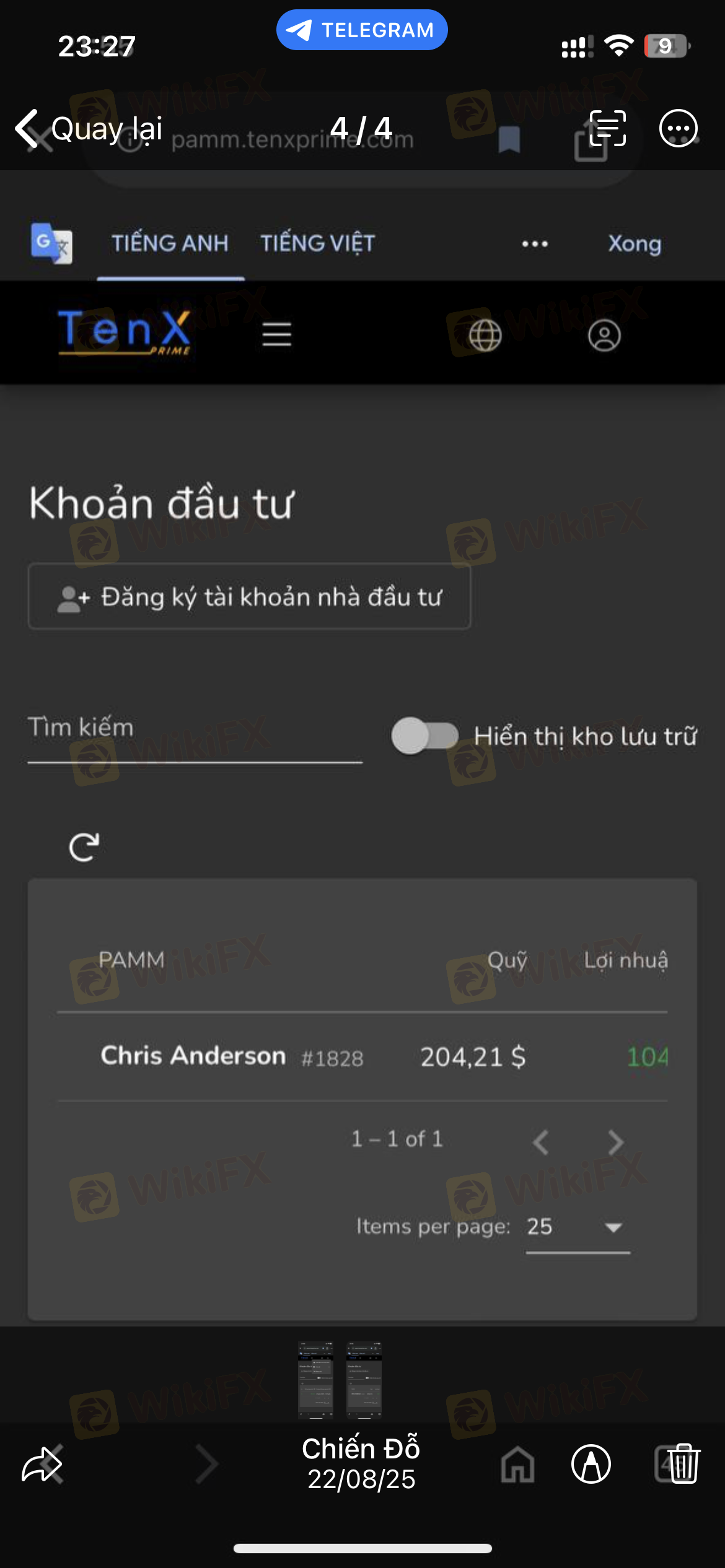 Queja Formal: Problemas con la Inversión PAMM de TenX Prime Por medio de la presente, presento formalmente un informe y expreso mi seria preocupación respecto a mi experiencia de inversión con la plataforma de inversión PAMM de TenX Prime. A través del programa PAMM de TenX Prime, invertí un total de $5,400 bajo la gestión de Chris Anderson (también conocido como Chris Gold Father) y Paul Gold Hunter. Lamentablemente, actualmente no puedo retirar mis fondos de inversión, y tanto el equipo de servicio al cliente del bróker como el gestor del fondo PAMM, el Sr. Chris Anderson, han dejado de responder a mis mensajes en Telegram. El número de contacto de Chris Anderson en Telegram es +88803975164, pero este número no se puede localizar. Además, desde el 2 de octubre de 2025, no he podido iniciar sesión en la página web de inversores PAMM de TenX Prime: 👉 https:pamm.tenxprime.comappinvestments2045 Esta situación es extremadamente preocupante, sospecho que mis fondos pueden haber sido mal administrados, congelados o retenidos sin ninguna transparencia o comunicación formal. He realizado múltiples intentos para contactar a los administradores de fondos y al equipo de servicio al cliente de TenX Prime, pero hasta la fecha no he recibido ninguna respuesta o asistencia, ni se me ha proporcionado ninguna explicación sobre el proceso de retiro o el estado de los fondos de mi cuenta. Insto encarecidamente a las autoridades reguladoras relevantes, inversionistas y organismos de supervisión financiera a que presten mucha atención a este asunto e investiguen las operaciones del PAMM de TenX Prime y la conducta de sus administradores de fondos asociados. Sinceramente espero que TenX Prime y las partes responsables respondan de manera oportuna, manejen este asunto adecuadamente y garanticen la seguridad devolución de mi inversión de $5,400. Revisión Formal: Problema de Inversión en PAMM de TenX Prime Me dirijo a ustedes para informar formalmente y expresar mi profunda preocupación respecto a mi experiencia de inversión con TenX Prime Broker en su Plataforma PAMM. Invertí un monto total de USD 5,400 bajo la gestión del Sr. Chris Anderson (también conocido