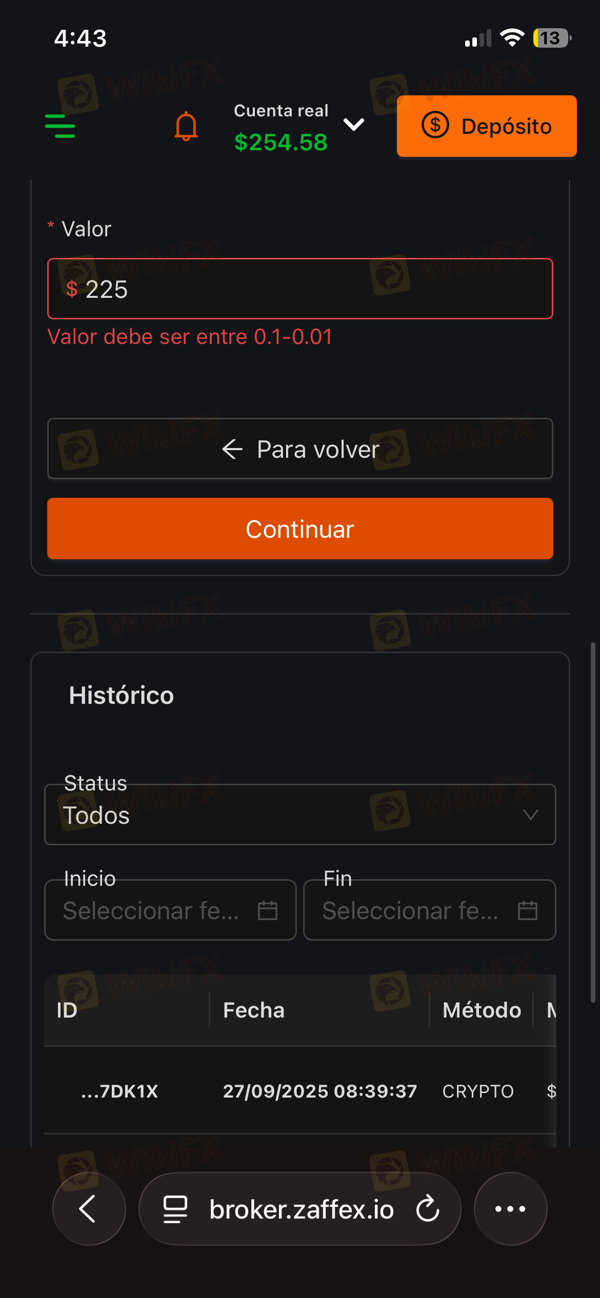 Zaffex congela los fondos de los clientes, si continúa operando, solo puede retirar hasta 0,1 dólares estadounidenses, y los 294,31 dólares estadounidenses restantes están bloqueados,