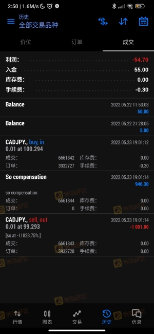 Plataforma de fraude. Se liquidaron 50 dólares de CADJPY en 2 segundos
