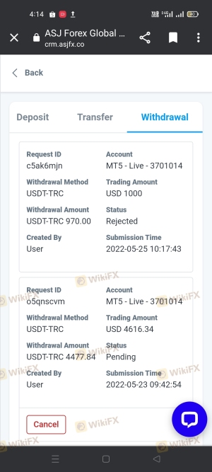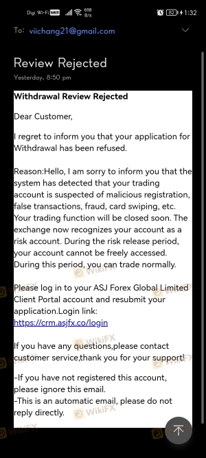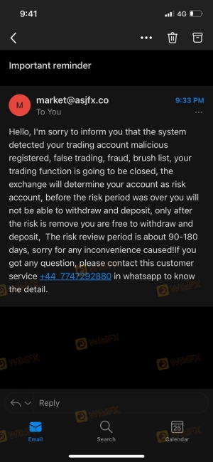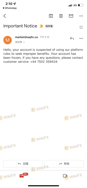 El 4 de mayo de 2022, mi cuenta ASJ fue suspendida repentinamente sin notificación previa. No pude retirar dinero y la solicitud fue rechazada. El servicio de atención al cliente no fue paciente al atender mi solicitud. El día después de que se suspendió la cuenta, solo recibí un correo electrónico que decía que se sospechaba que mi cuenta usaba las reglas de nuestra plataforma para buscar beneficios indebidos. Estaba usando la plataforma ASJ para el comercio de Forex normal en términos de Compra/Venta, no hubo otros beneficios indebidos en el medio. Tenía la sospecha de que la plataforma querría evitar que retirara mi propio dinero. Tengo algunas líneas descendentes y ascendentes que alguna vez retiraron dinero y se enfrentaron a la misma situación, solo aquellos nuevos usuarios de cuentas que nunca retiraron dinero todavía estaban activos y podían operar.