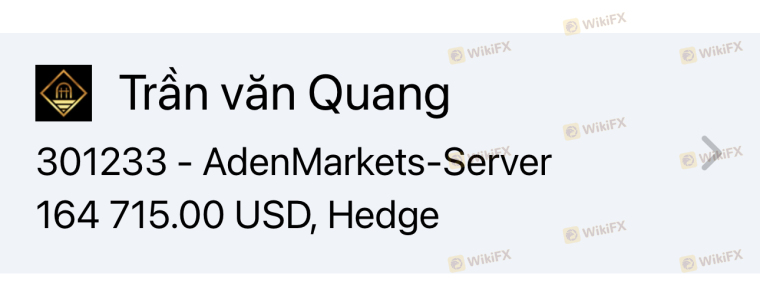 Abrí una cuenta en Aden Markets , mi presentador es https://t.me/mr_hoang5 y mi asistente es https://t.me/nhu999666. Después de un período de negociación, pude retirar la cantidad de 100 dólares, lo cual está bien. pero la segunda vez que quiero retirar dinero no puedo retirarlo. Cuando me comunico con el servicio de atención al cliente, me dicen que solo permiten un retiro. Si quiero retirar dinero, tengo que actualizar a una cuenta vip con un monto de 38,880 usd. Cada 3 meses, puedes retirar tanto como quieras. Mientras tanto, el dinero que deposité para operar es más de 45.000 dólares y el dinero en la cuenta comercial es más de 165.000 dólares. No acepté actualizar a una cuenta vip, hasta ahora mi cuenta no ha cambiado. mi transacción no ha sido procesada ni puedo retirar dinero. mi cuenta (id 301233).